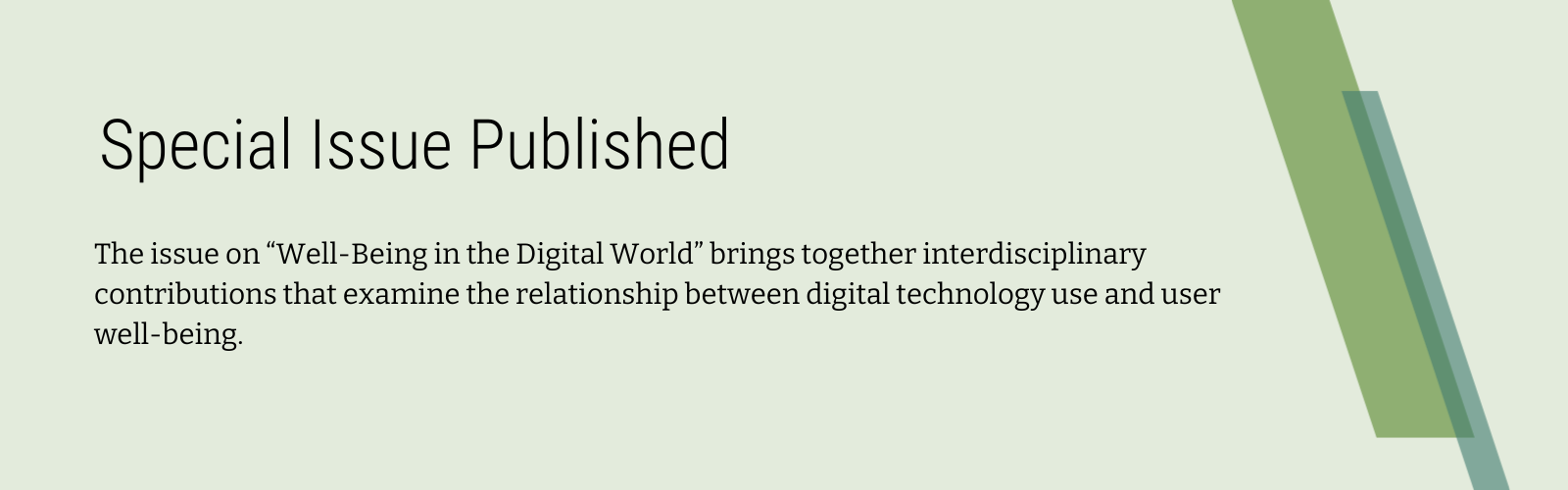 Editorial: Special Issue: Well-Being in the Digital World